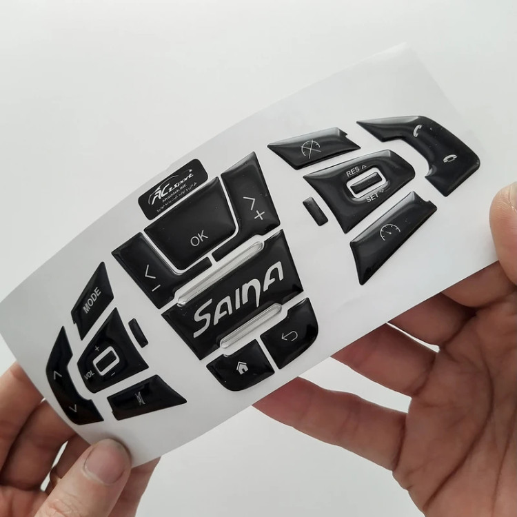 ماکت کلیدهای فرمان مدل QuikSainaS فقط مناسب برای کوئیک اس و ساینا اس و سایر تولیدات مشابه فرمان این خودرو است. از روی کاغذ جدا کنید و با دقت روی قسمت مربوطه بچسبانید و تمام. (دقت داشته باشید ک در سرما به هیچ عنوان نصب نکنید، با کمی حرارت دادن به چسب لیبل می توانید به راحتی بدون وجود حباب یا لکه بچسبانید.)