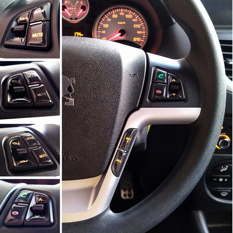 برای اولین بار یک ایده جدید توسط مجموعه روکا پارس با رونمایی از ماکت کلیدهای کروز و مدیا فرمان مدل پژو برای خوردو پژو 207 و رانا و پژو پارس با تولید یک مجموعه شامل 16 قطعه ماکت کلید های فرمان خودرو پژوپارس و پژو 207 و رانا نمای زیبا و فوق العاده جذاب را به فرمان خودرو خود دهید.. این ماکت با طراحی دقیق کلیدهای فرمان خودرو به طور کامل جای خالی روی فرمان را پر می کند. به صورت کریستال برجسته مشکی، شفافو کرومی میباشند. نصب این محصول بسیار آسان بوده و با استفاده از چسب بیرنگ پشت قطعه ها، کافی است آنها را از روی کاغذ جدا کنید و بر روی محل مربوطه روی فرمان سری اس بچسبانید. ماکت کلید های فرمان مدل پژو دارای خصوصیاتی همچون ضد حرارت و ضد خط و خش بوده و برای استفاده طولانیمدت مناسب هستند. ماکت کلیدهای فرمان چیکال مدل فقط مناسب برای رانا و پژو پارس و پژو 207 و سایر تولیدات مشابه فرمان این خودرو است.