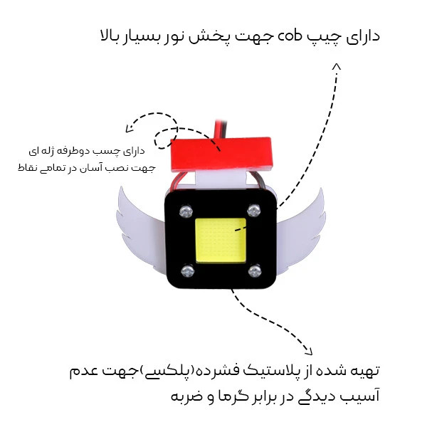 دارای چیپ COB با بالاترین پرتاب نور ، قابل نصب روی شیشه عقب خودرو ، دارای ۴ متر سیم جهت سیم کشی از زیر صندلی جلو و عقب ، نصب آسان از طریق چسب دو طرفه