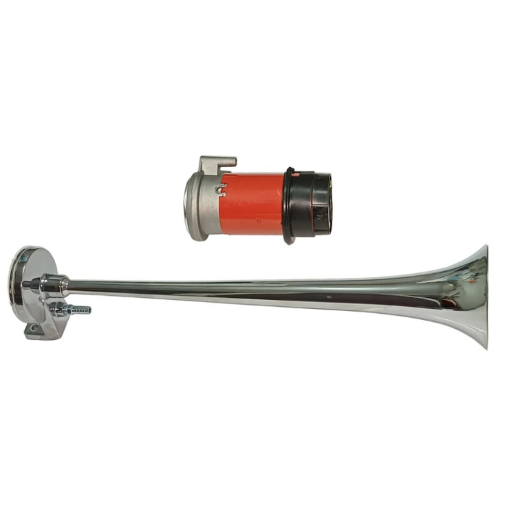 بوق خودرو مدل شیپوری به صورت تک لول بوده و همراه با پمپ باد می باشد و دیگر لازم به مخزن باد نمی باشد.این بوق مناسب برای سواری و موتور سیکلت می باشد و ولتاژ مورد نیاز آن 12 ولت می باشد.این مدل از بوق علاوه بر پمپ باد،یک عدد شلنگ و به همراه پیچ و مهره می باشد.جنس لوله از استیل می باشد و فقط یک نوع حالت صدا دارد(ساده).از ویژگی های این مدل میتوان به صدای بسیار بلند و فوق العاده زیاد آن اشاره کرد،علاوه بر آن،این محصول از کیفیت بسیار عالی و مطلوبی برخوردار است